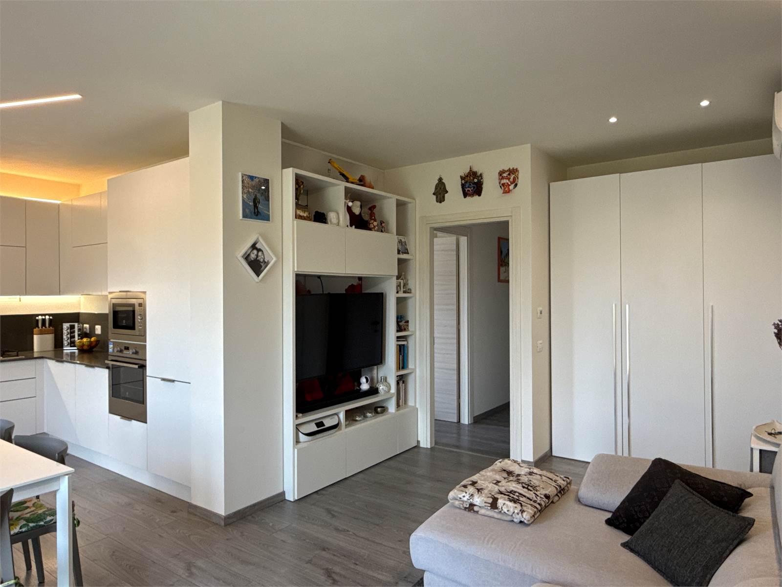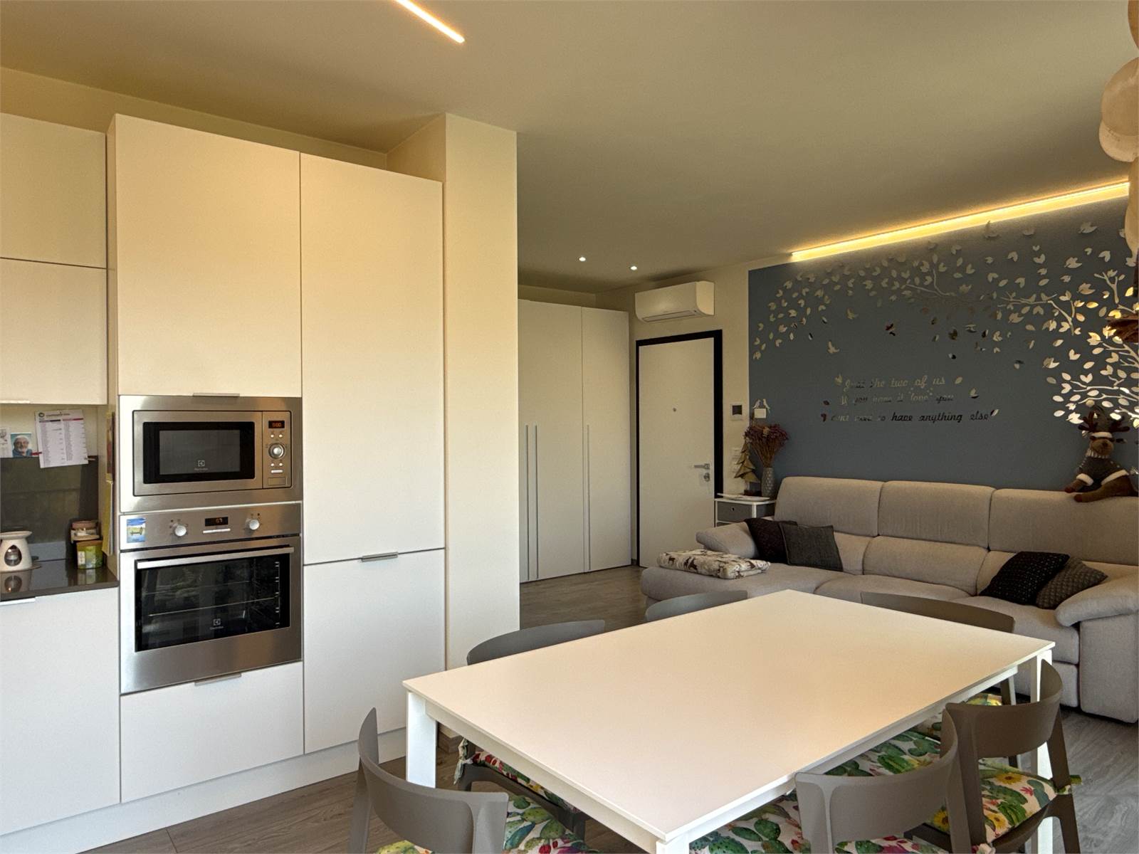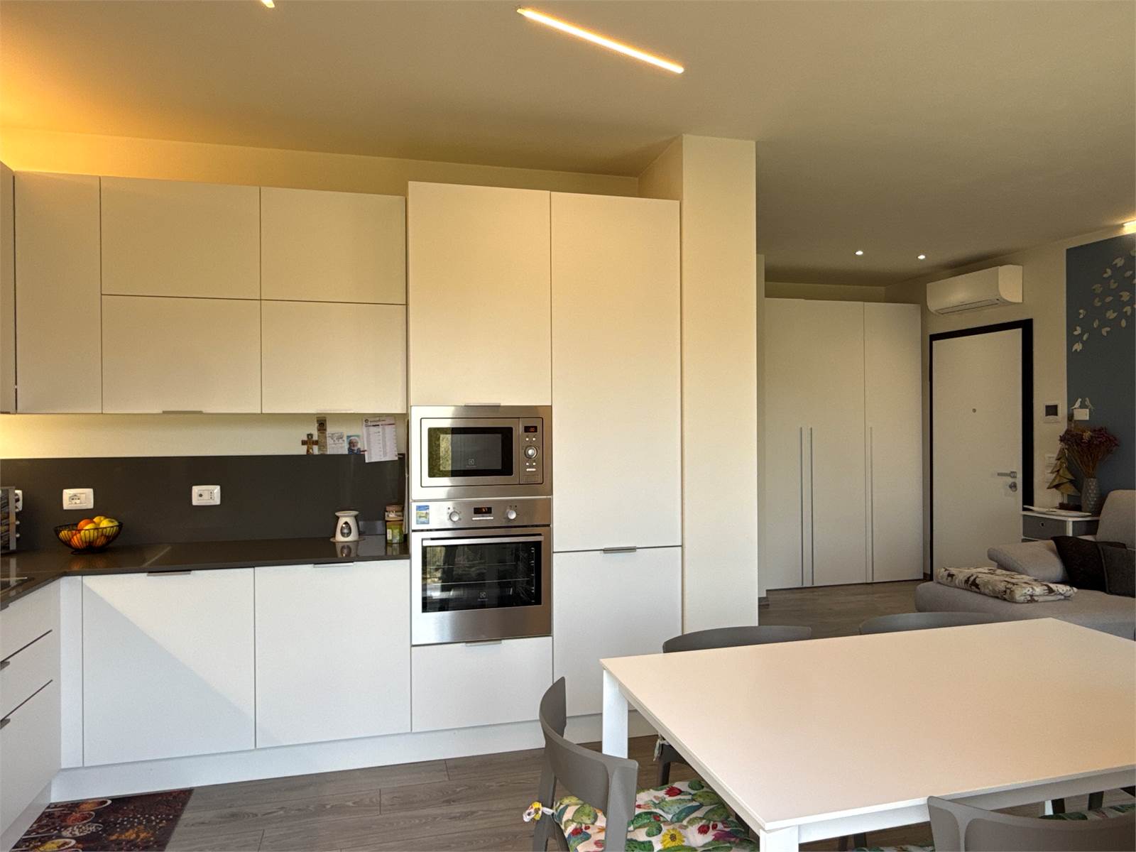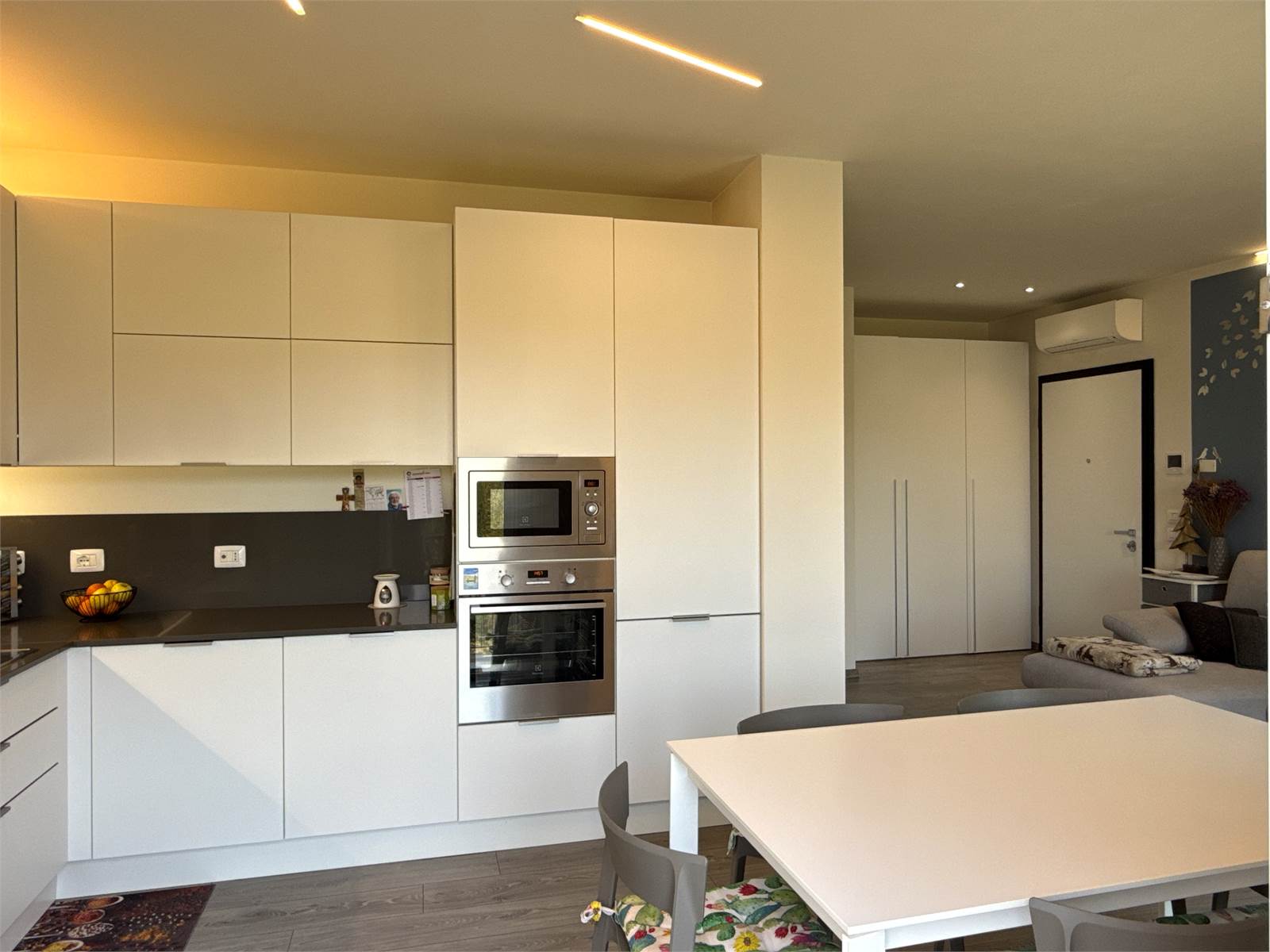 L’ingresso si apre su una luminosa zona giorno open space, accogliente e moderna, con ampio soggiorno e cucina a vista. La cucina, completa di tavolo e sedie, è compresa nel prezzo di vendita.