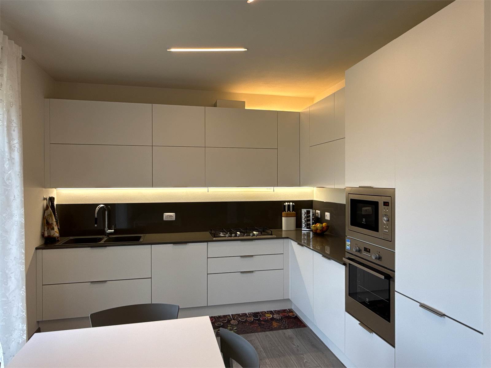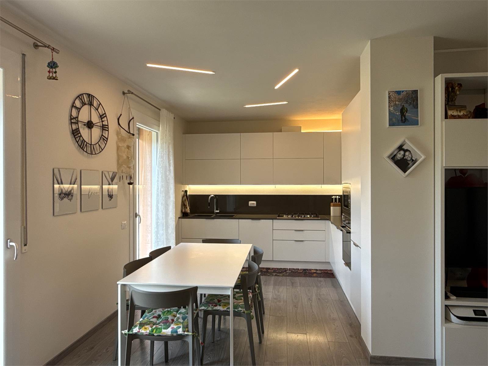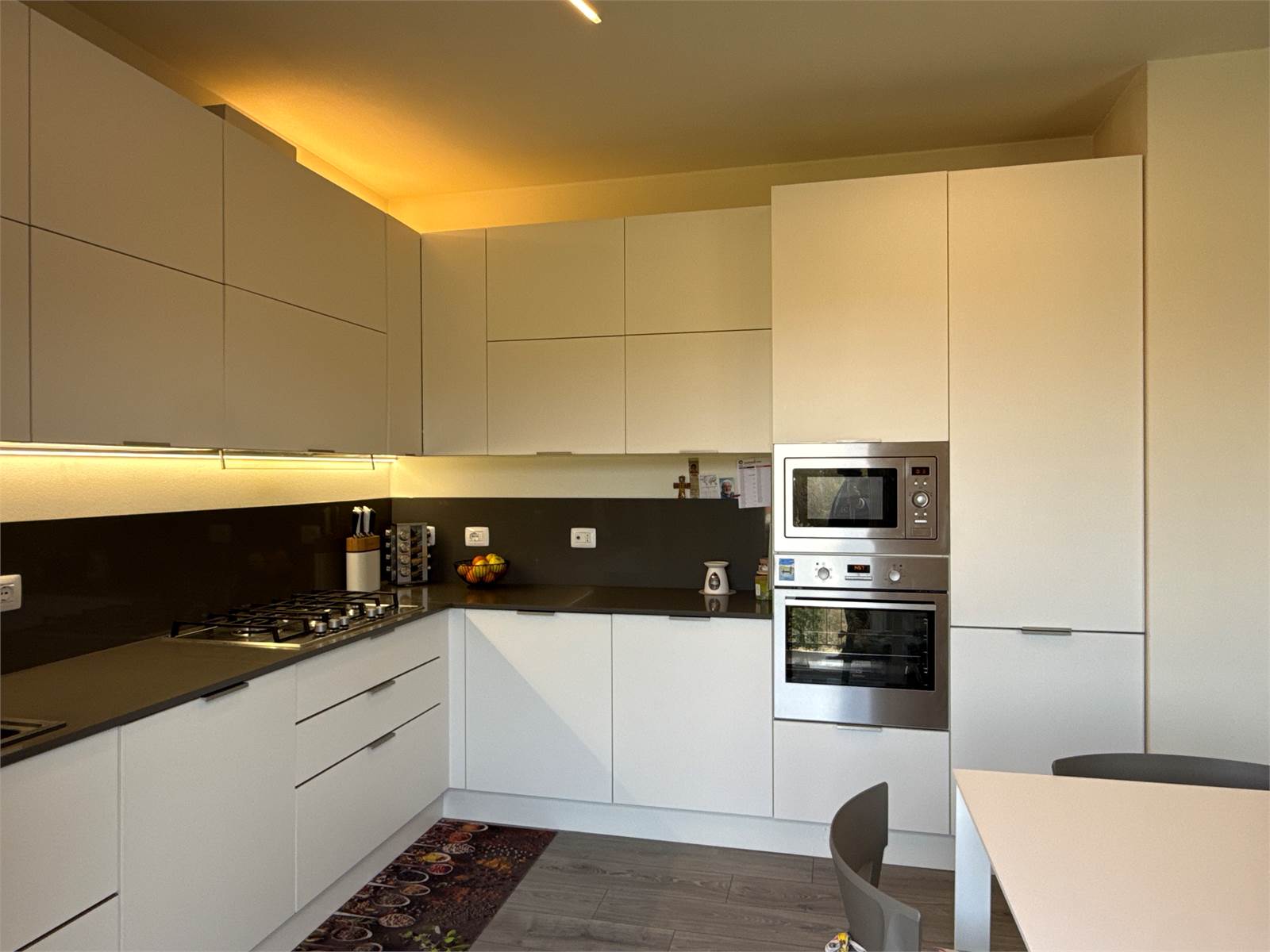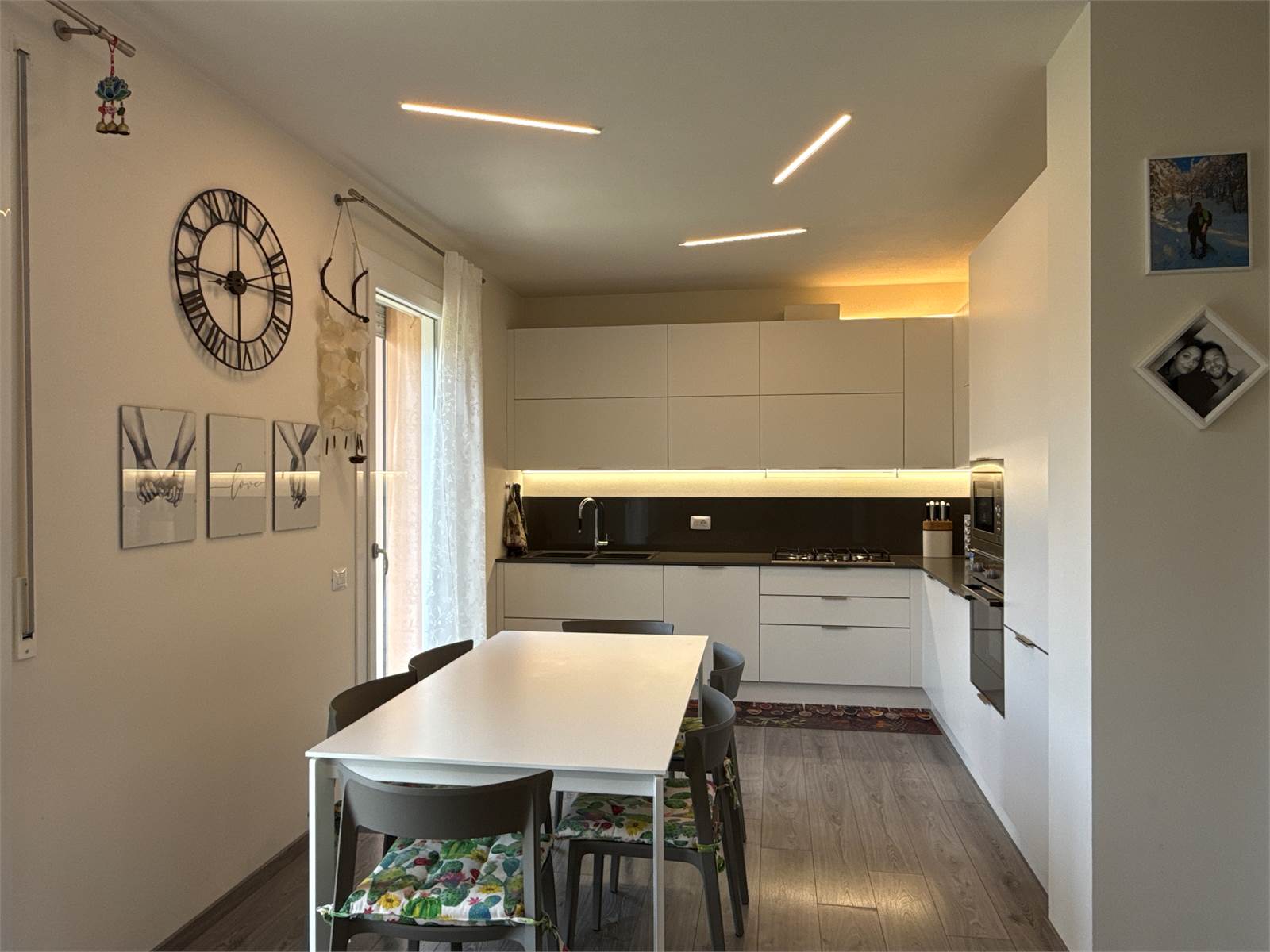 L’ingresso si apre su una luminosa zona giorno open space, accogliente e moderna, con ampio soggiorno e cucina a vista. La cucina, completa di tavolo e sedie, è compresa nel prezzo di vendita.