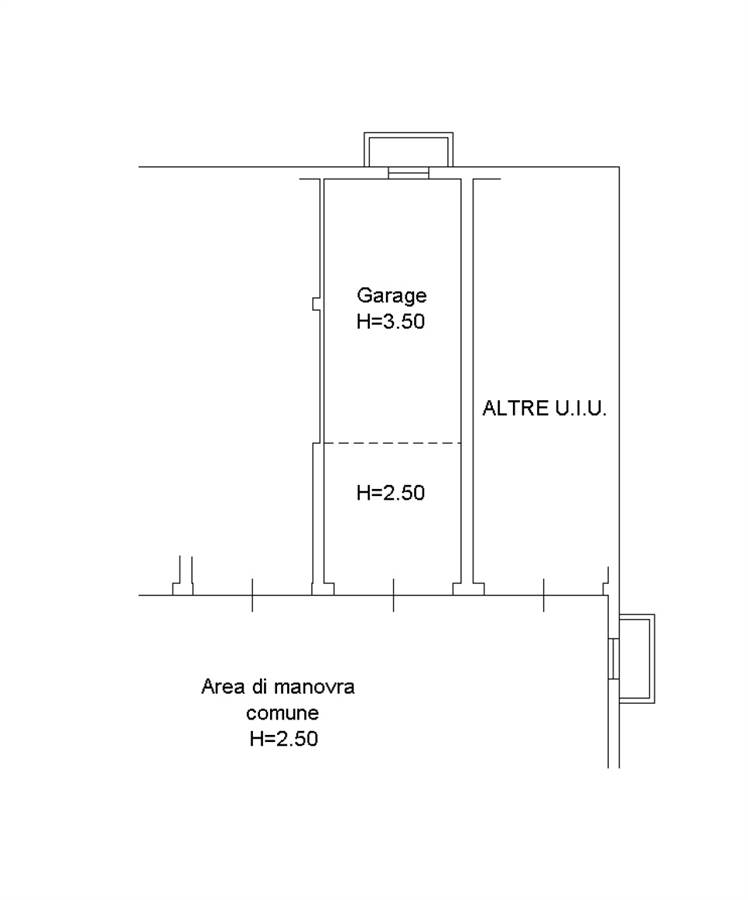 Al piano interrato è presente un garage di proprietà di circa 35 mq, caratterizzato da doppia altezza massima di 3,50 metri, soluzione particolarmente utile anche per chi necessita di maggiore spazio di deposito.