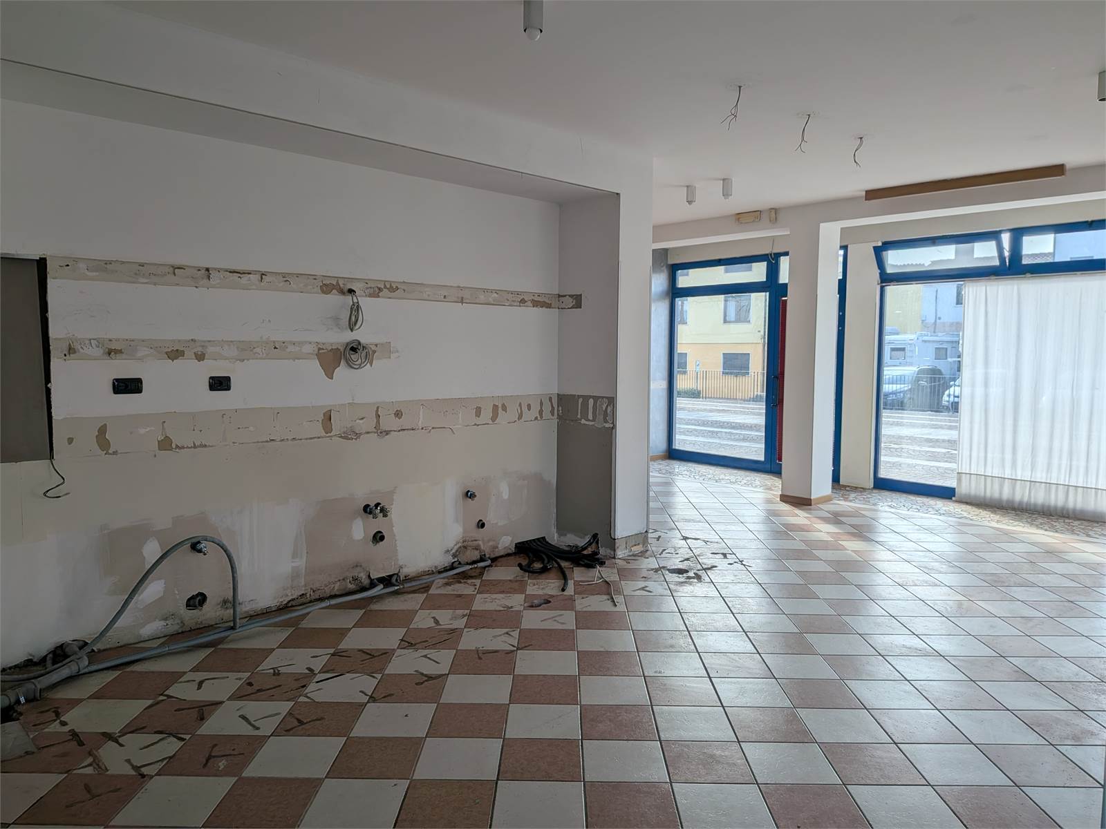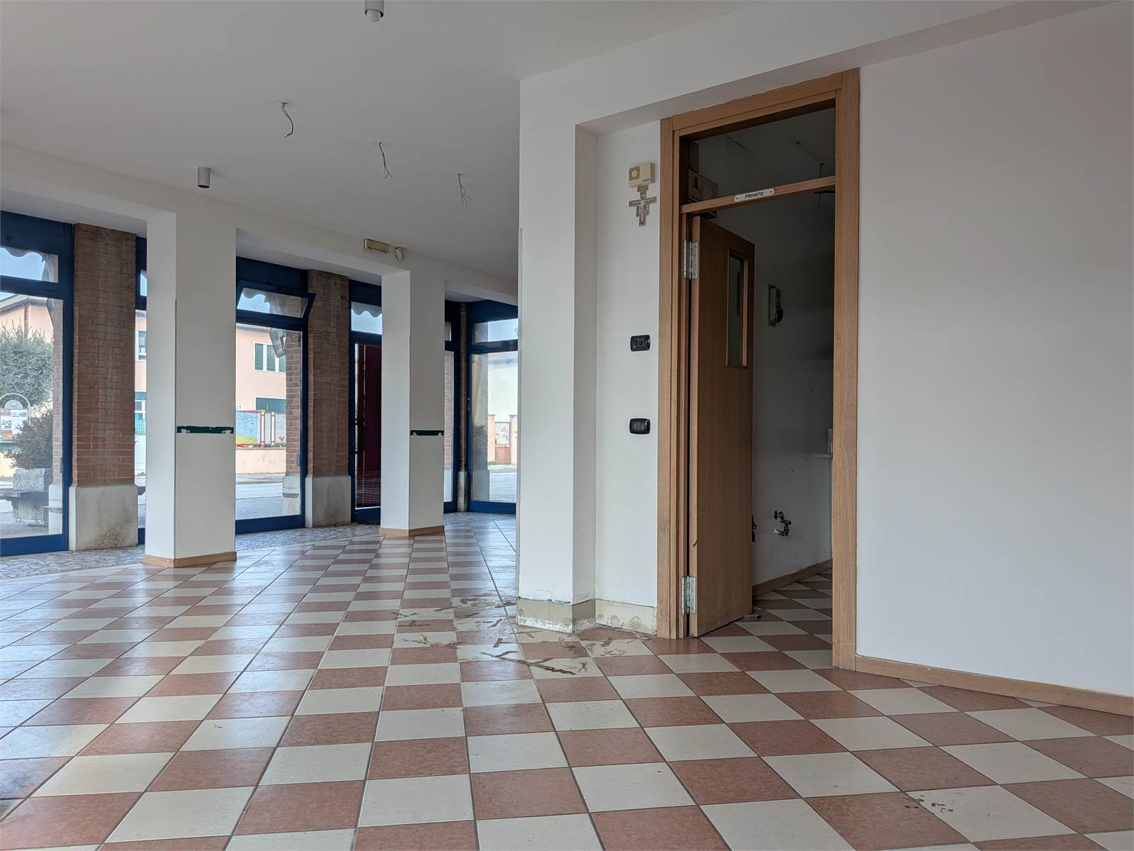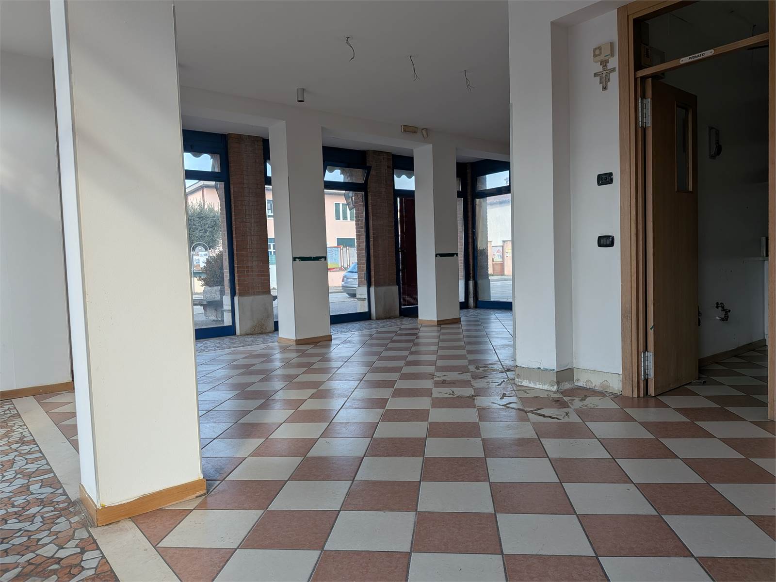 A MOLINA DI MALO, lungo la strada, di forte passaggio automobilistico, che collega MALO con THIENE, vendesi locale commerciale con ampie vetrate poste sui 2 lati dell'immobile. Il locale si trova al piano terra ed è posto proprio davanti la chiesa, in uso un ampio piazzale pedonale condominiale e parecchi parcheggi posti nelle vicinanze. Il locale al piano terra è di circa 90 mq e all'interno si compone di un'ampia zona al pubblico, un laboratorio e servizi igienici. Dall'interno del locale, tramite una scala, si accede all'interrato per arrivare su un deposito-garage di 70 mq totali con un'altezza di mt 2,80 e completo di bagno.