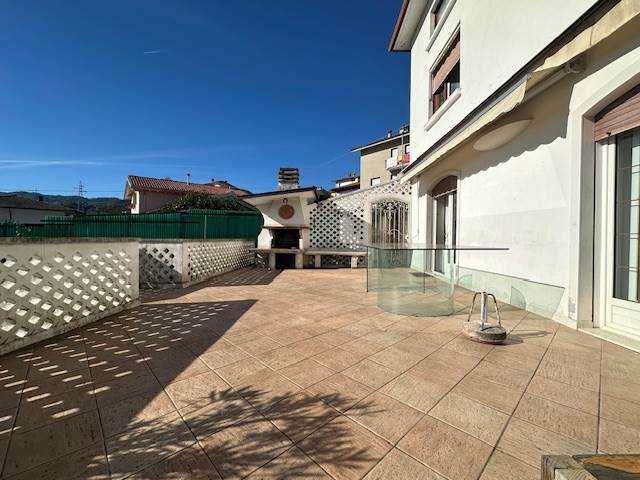 Il piano interrato si compone di box auto doppio, taverna, bagno, e cantine. Si raggiunge la splendida terrazza di mq 60 dalla comoda scala esterna o direttamente dal piano interrato dove si affacciano, una ampia cucina, una sala da pranzo ed un soggiorno, completano il piano terra un bagno finestrato con vasca idromassaggio e una camera per gli ospiti. Salendo al piano primo troviamo due camere matrimoniali e una camera doppia e due bagni finestrati con vasca o doccia.
